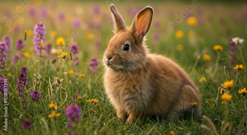 © Bocx, Fototapeta premium Bunny in meadow, vibrant colors