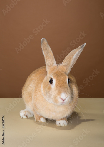 © dannyburn, Fototapeta premium bunny rabbit posing in a studio against a cream and brown wall