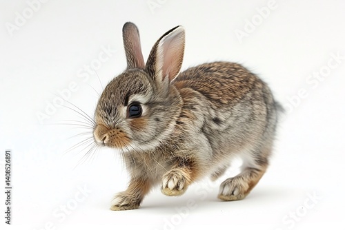 © Auon, Obraz premium Bunny running ears bouncing tiny paws mid stride fluffy fur detailed motion blur on legs isolated on a white background