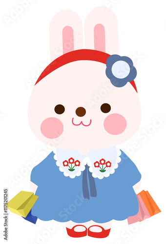 Naklejka premium Bunny walks with shopping bags, she is shopping.