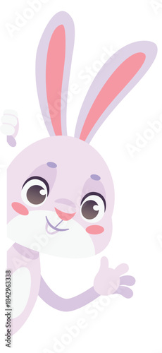 Obraz premium Bunny waving hand. Greeting cartoon rabbit mascot