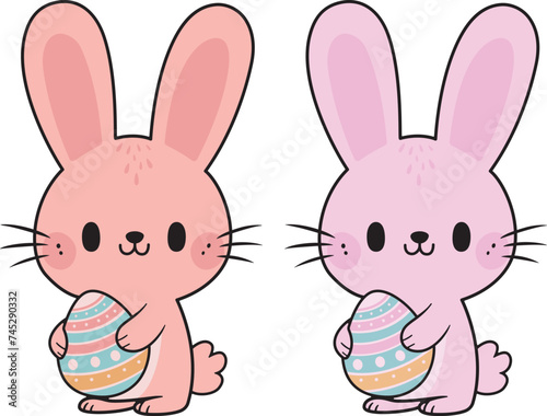 © Kasorn, Fototapeta premium Bunny with egg easter vector illustration on a white background