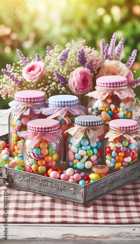 Fototapeta premium Bunte Bonbons in hübschen Gläsern