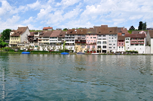 © hachri, Fototapeta premium Bunte,mittelalterliche Hausreihen in Eglisau am Rhein