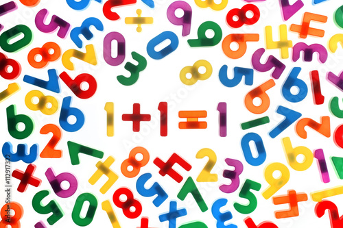 © Jörg Lantelme, Fototapeta premium Bunte Zahlen und Matheaufgabe