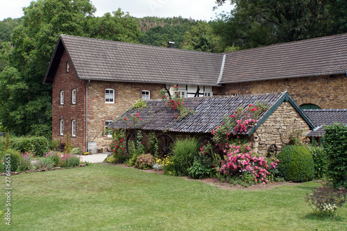 © etfoto, Fototapeta premium bunter Bauerngarten vor altem Bauernhaus