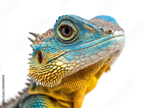 © Cedric, Fototapeta premium Buntfarbiger Wasseragame Porträt vor weißem Hintergrund