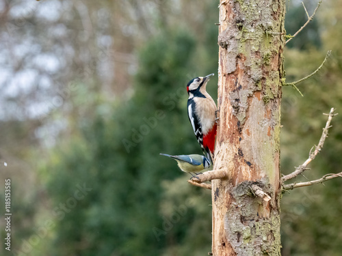 © Lothar Lenz, Naklejka premium Buntspecht und Blaumeise