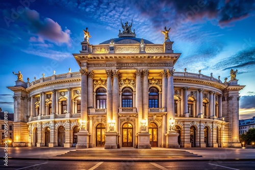 © prapatsorn, Obraz premium Burgtheater Vienna Night Dramatic Low Light Architecture Photography