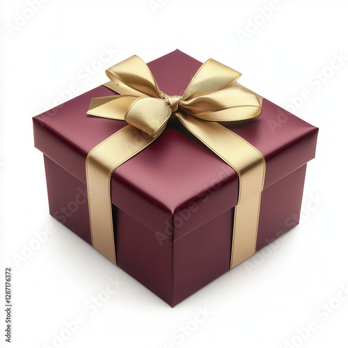 Obraz premium Burgundy Gift Box with Gold Ribbon and Bow on White Background