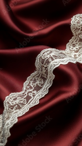 Obraz premium Burgundy Silk Fabric Draped With Delicate Lace Trim Detail