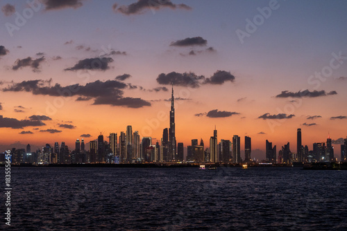 Obraz premium Burj khalifa dominating dubai skyline during golden hour sunset