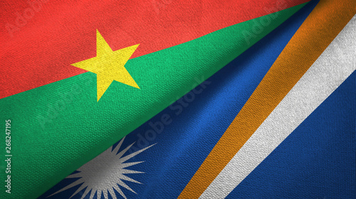 Fototapeta premium Burkina Faso and Marshall Islands two flags textile cloth, fabric texture