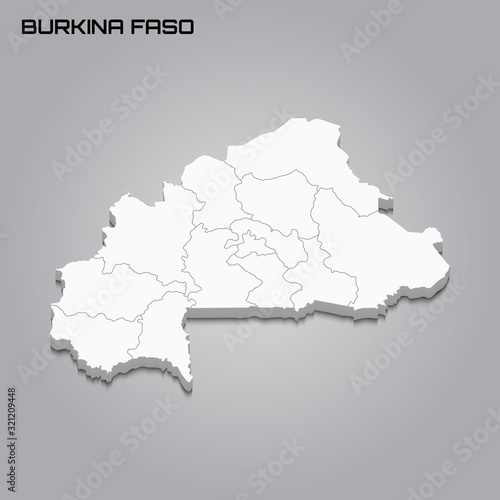 Fototapeta premium Burkina Faso 3d map with borders of regions
