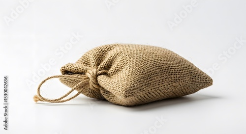 Fototapeta premium Burlap Sack on White Background - Small Empty Jute Bag with Drawstring Closure
