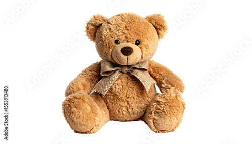© Ninja in Pajamas, Fototapeta premium burlap teddy bear with a cord bow, isolated on transparent background