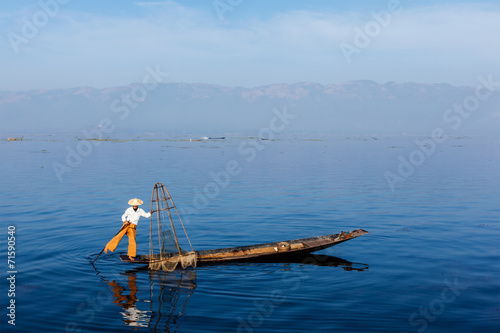 © Dmitry Rukhlenko, Obraz premium Burmese fisherman at Inle lake, Myanmar