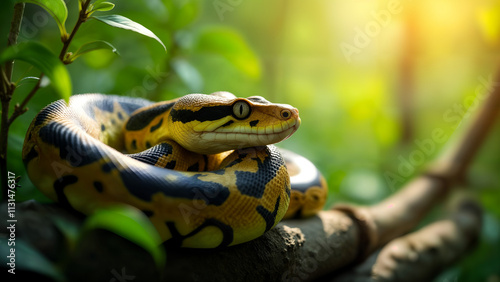 © LemonellArt, Obraz premium Burmese Python in Vibrant Jungle