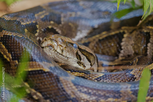 © Dipankar'Photography, Obraz premium Burmese python (Python bivittatus) at Garbhanga RF, Assam, India