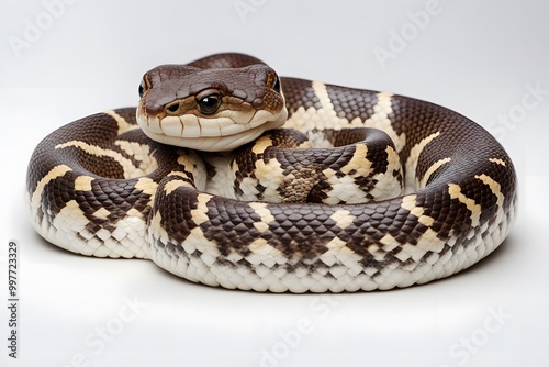 © Shabana, Fototapeta premium Burmese python snake on white background, AI Generated