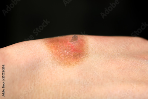 Fototapeta premium Burn on the hand. Brown spot on skin after burn