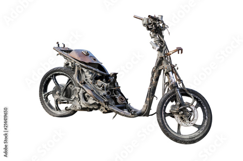 Obraz premium Burned scooter parked on studio