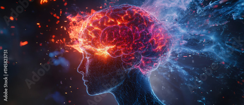 © Killian, Fototapeta premium Burning Brain Neural Network, Fire and Ice, 3D Render, Abstract, Conceptual