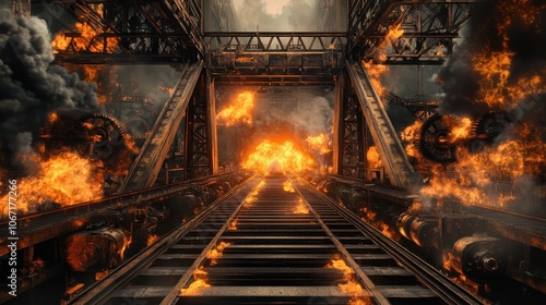 © Ilya, Obraz premium Burning camera isolated on black screen