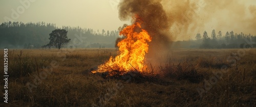 © vxnaghiyev, Fototapeta premium Burning dry grass in the garden: environmental consequences for green spaces and ozone protection