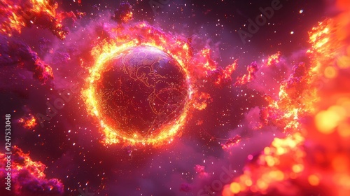 © mlangsen, Obraz premium Burning Earth, cosmic fire, space background, climate change concept