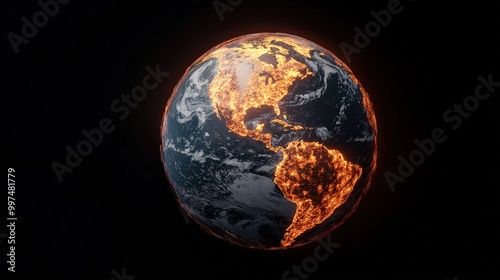 Fototapeta premium Burning Earth Global Warming Concept Climate Change Planet Hot Fire...