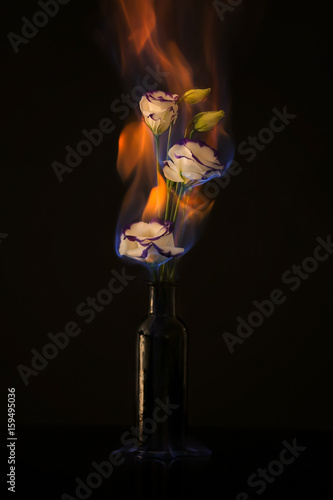 Naklejka premium Burning eustoma flowers on black background