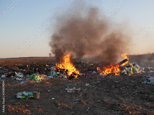 Obraz premium burning garbage close up. burning garbage. concern for the environment. environmental pollution.