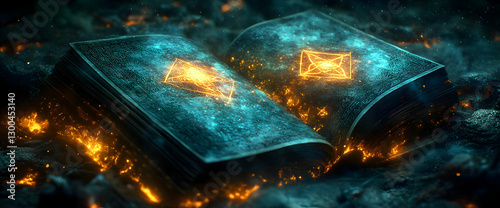 © Sri, Obraz premium Burning Glowing Ancient Books