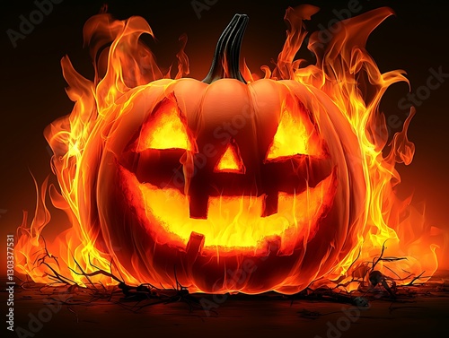 © tahu, Fototapeta premium Burning Jack-o'-lantern