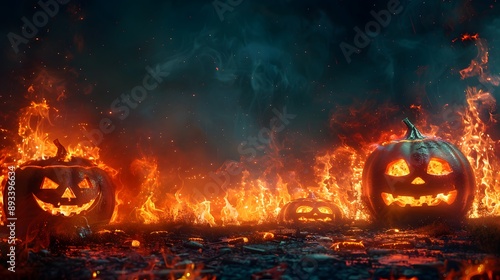Fototapeta premium Burning Jack-o'-Lantern with Flames.