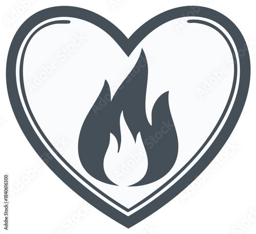 Fototapeta premium Burning Love Creative Design: Heart-shaped emblem with stylized flame interior