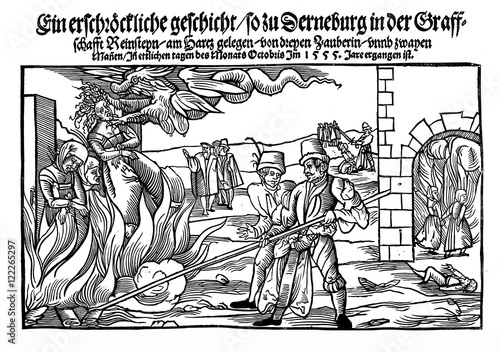 © acrogame, Fototapeta premium Burning of three witches, 1555