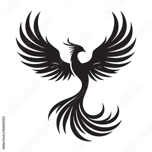 © Vectorhub, Obraz premium Burning Phoenix silhouette perfect for ancient mythology themes - Phoenix illustration - Phoenix vector - mythical creature silhouette