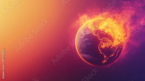 © PetrovMedia, Fototapeta premium Burning Planet Earth depicting climate change crisis - Global Warming - Fire and Flames