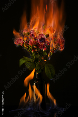 Fototapeta premium Burning roses on black background