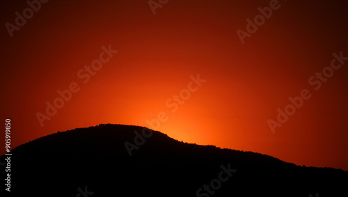 © naudylucenaq, Obraz premium Burning sunset on the mountain