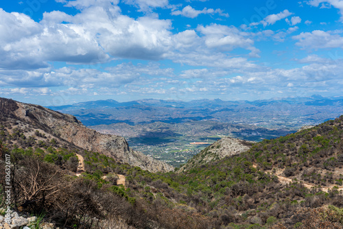 Naklejka premium Burnt forest on trail to the peak Mijas, Malaga, Spain