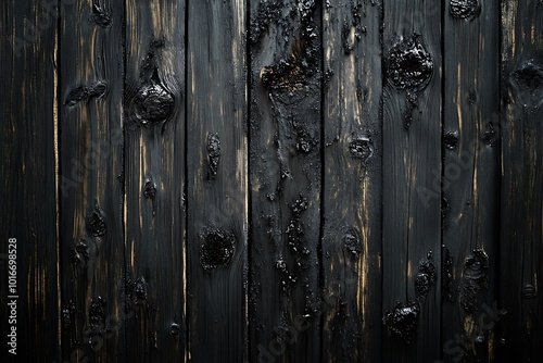 Fototapeta premium Burnt wood texture. Black charcoal background for design. Wooden wall damaged...