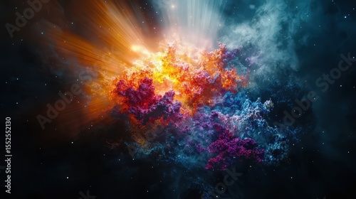 Fototapeta premium Burst of light in dark space with rays emanating cosmic nebula digital art...