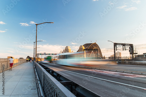 Fototapeta premium Bus and cars driving through Harbour Bridge, Sydney, Australia.