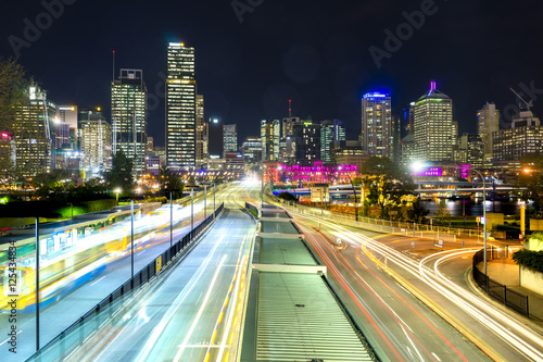© ymgerman, Fototapeta premium Bus station and modern buildings at night