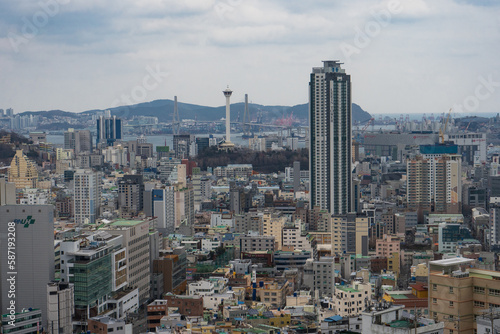 Fototapeta premium Busan city view around Gamcheon Culture Village during winter afternoon at...