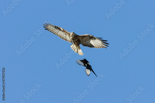 Fototapeta premium BUSARDO CON GARZA BUTEO BUTEO