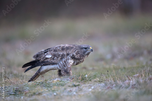 © denis, Fototapeta premium Buse variable Buteo buteo au sol